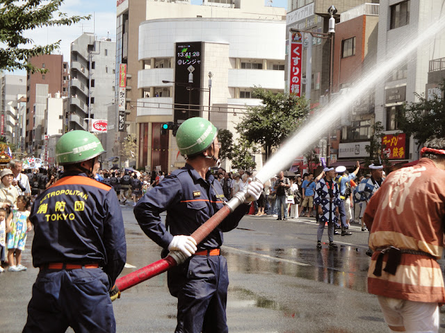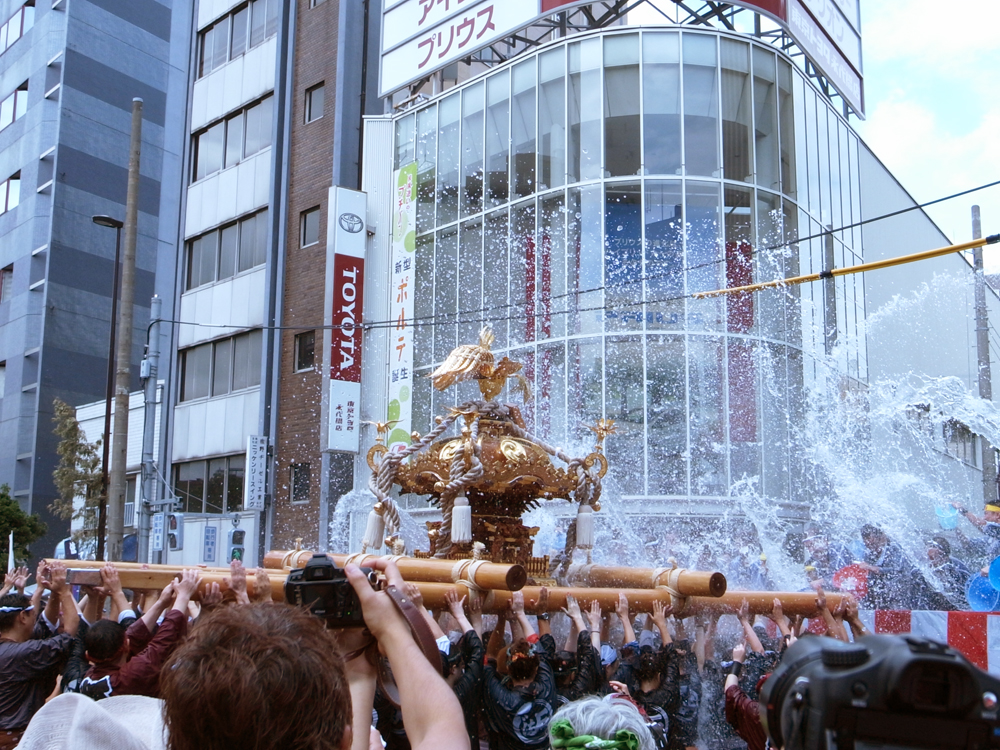 Although I've seen carrying mikoshi festival usually,this is really unique to pour water on mikoshi!!